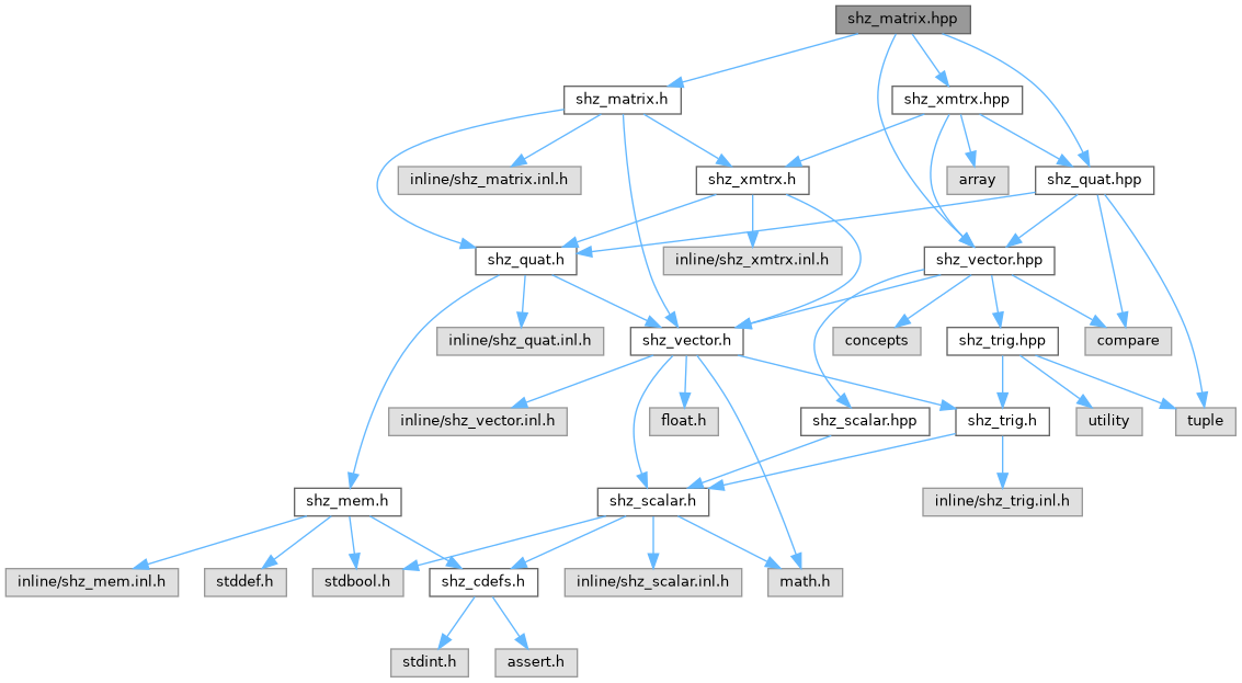 This file provides a C++ binding layer over the C API provied by shz_matrix.h.